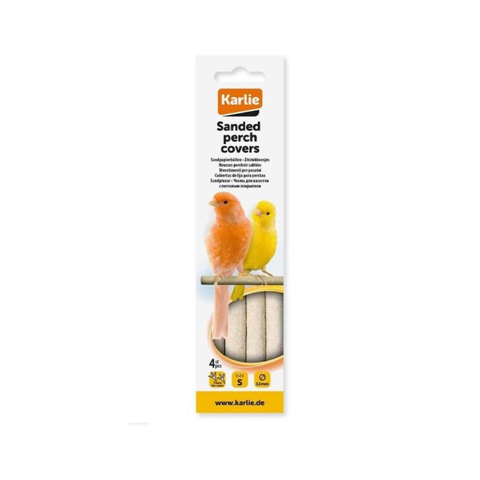 Claws of cage birds tend to grow faster than they are worn down and long claws can be really painful to the bird. These sanded perch covers are an effective way to keep the bird's claws short and clean. Birds tend to eat from the sand to help them digest food. For further care and hygiene for your bird and its cage, we recommend the use of Karlie sand sheets.