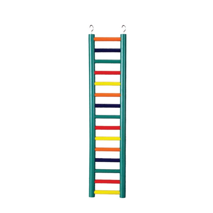 Prevue Pet Products 4/6/9/11/15 Rung wood ladders feature high-quality, heavy-duty construction. All ladders are colored with 100% safe FD&C colors and include top hooks for easy hanging in bird cages