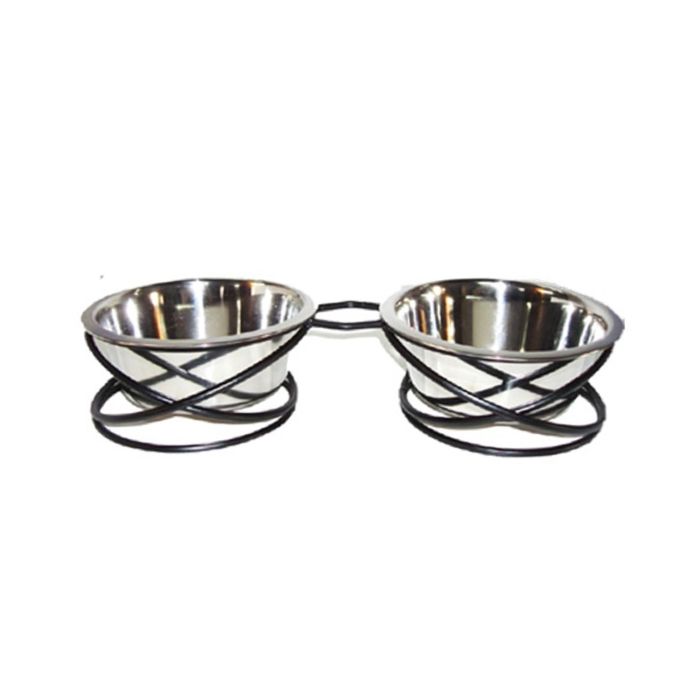 Raintech Wrought Iron Designer Wobble Frames Two Stainless steel Bowls