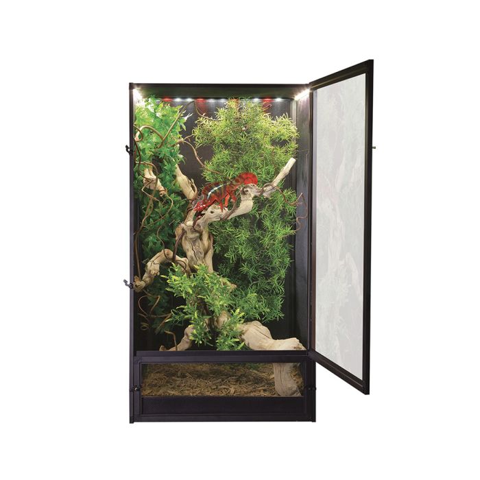 - Clear acrylic door panel allows for unobstructed terrarium viewing.